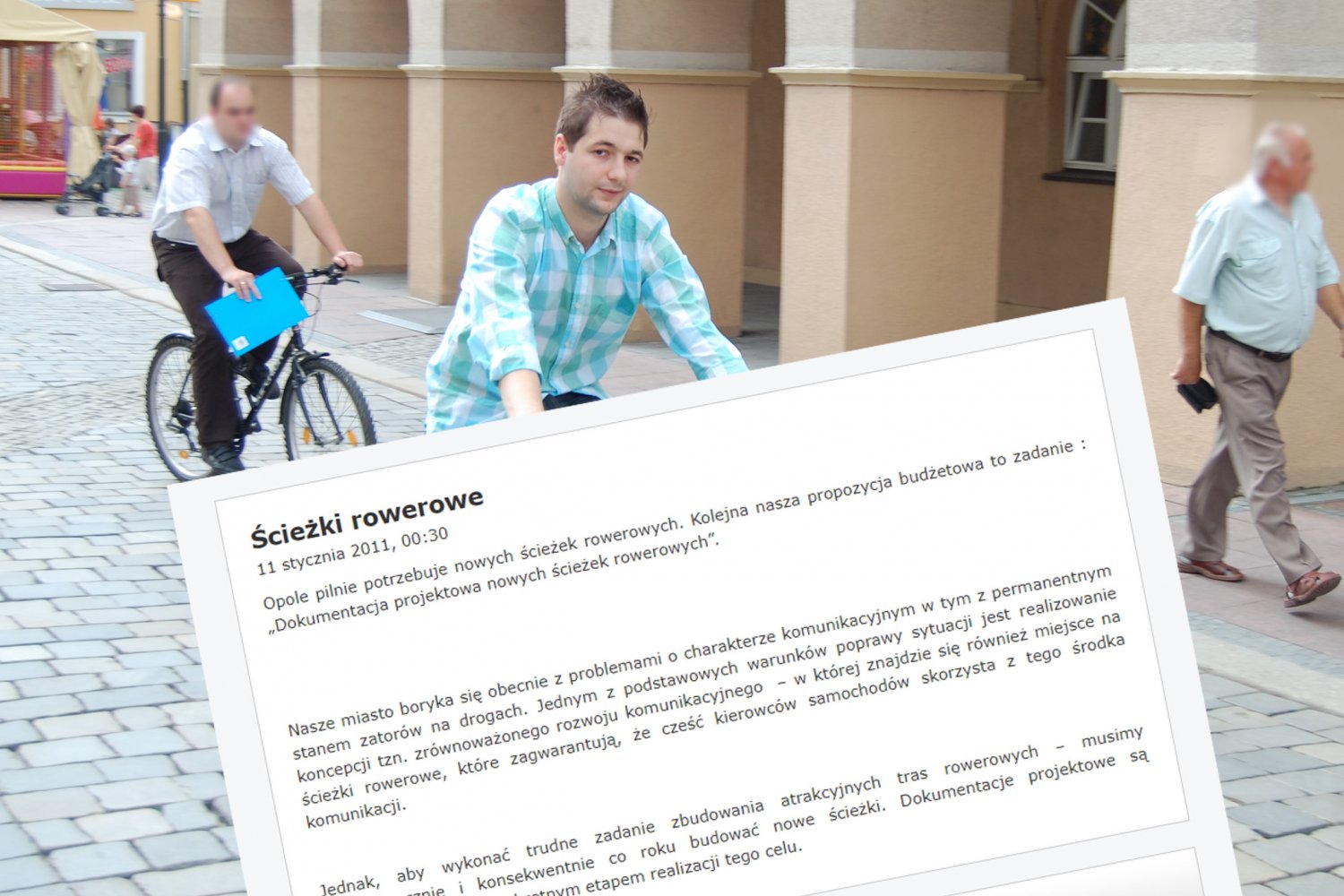 – Nasze miasto [Opole -red.] boryka się obecnie z problemami o charakterze komunikacyjnym w tym z permanentnym stanem zatorów na drogach. Jednym z podstawowych warunków poprawy sytuacji jest realizowanie koncepcji tzn. zrównoważonego rozwoju komunikacyjnego – w której znajdzie się również miejsce na ścieżki rowerowe, które zagwarantują, że cześć kierowców samochodów skorzysta z tego środka komunikacji – pisał w 2011 roku na swojej stronie.