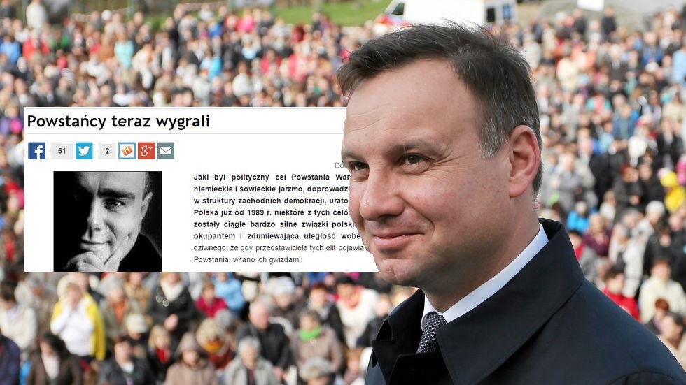 – Powstańcy teraz wygrali – pisze dziś w "Gazecie Polskiej Codziennie" naczelny Tomasz Sakiewicz. – Patrząc na prezydenta elekta Andrzeja Dudę, którego powstańcy i ich rodziny przyjęli ogromnym aplauzem, można powiedzieć, że cel polityczny Powstania Warszawskiego został właśnie zrealizowany.