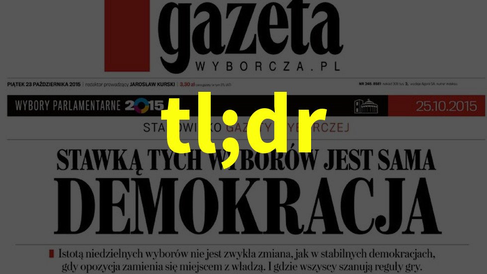 Na pierwszy ogień wyborcze stanowisko "Gazety Wyborczej", które zajmuje dziś pierwszą stronę "Gazety". Oto bijący na alarm oryginał, a oto streszczenie, jeśli akurat nie macie czasu.