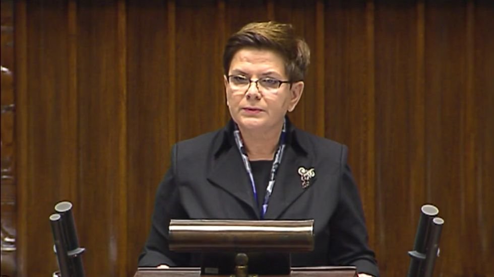 Co ciekawe, jedynie Jarosław Kaczyński wtedy nie klaskał. Szef PiS przez całe przemówienie Beaty Szydło wykonywał w stronę pani premier gest, jakby chwytał ją za gardło.