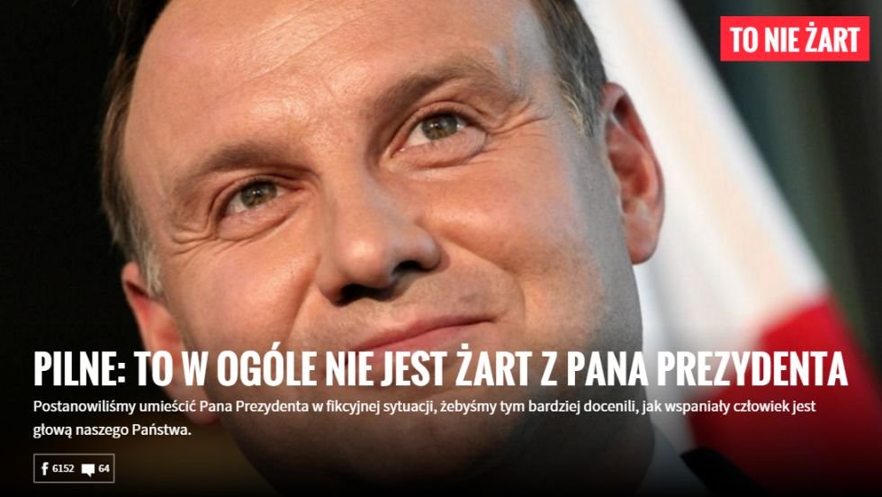 *Pierwszy akapit (lead) zawiera wprowadzenie w temat. Polskie media rozpisują się o tym, że prezydent nie rządzi samodzielnie. Udaliśmy, że rozumiemy tę narrację, żeby jeszcze bardziej ją ośmieszyć.