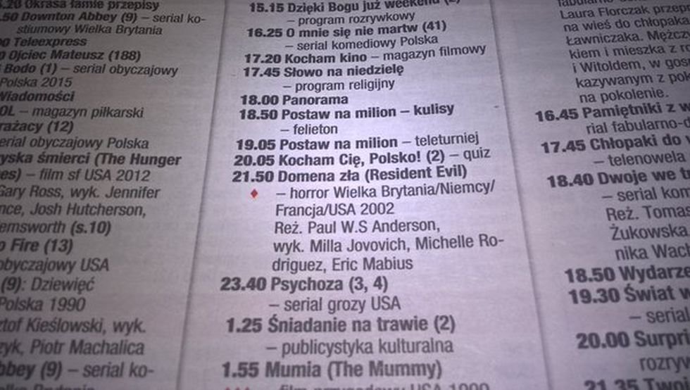 Jak ta z sobotnią ramówką w TVP2, gdzie przez połowę dnia wszystko szło dobrze, było "Słowo na niedzielę", było "Kocham Cię, Polsko", ale potem stało się coś bardzo ZŁEGO.