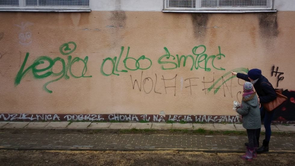 Dramat na stołecznej Woli. Jedna z matek już od trzech kwadransów próbuje wytłumaczyć córce antropologiczną głębię napisu "Legia albo śmierć" na szkolnym murze.