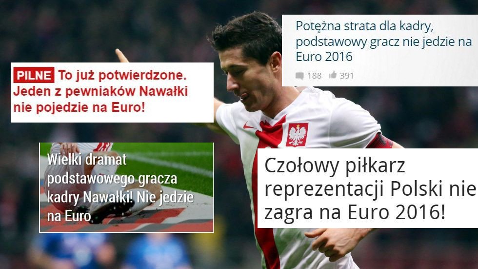 – Podstawowy gracz nie jedzie na Euro! Jeden z pewniaków! Wielki dramat podstawowego gracza Nawałki! – wpisuje drżącymi z nadziei rękami redaktor strony głównej dużego portalu licząc, że internet pomyśli, że chodzi o Roberta Lewandowskiego, a nie jakiegoś tam Macieja Rybusa.