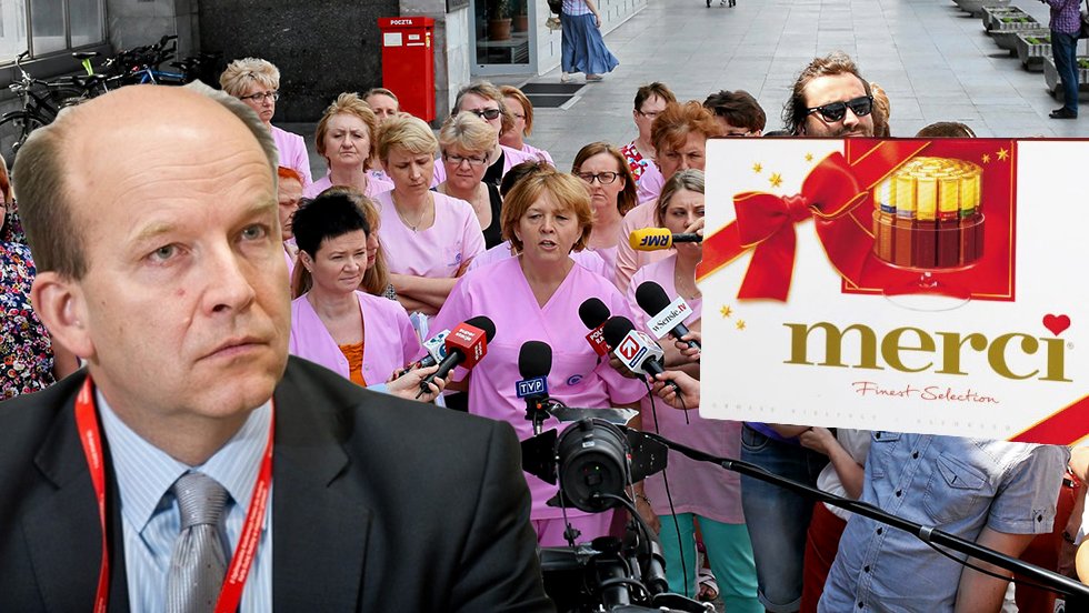 – Pojechałem na spotkanie z pielęgniarkami do Centrum Zdrowia Dziecka z Merci, aby zakończyły strajk – żali nam się Konstatny Radziwiłł, minister zdrowia. – Niestety, żadna pielęgniarka nie chciała ode mnie przyjąć bombonierki – dodaje.