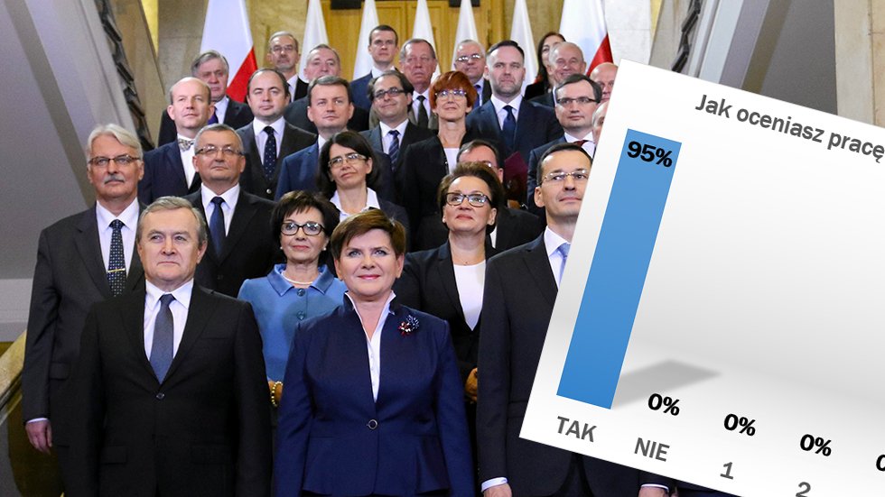 – 95% respondentów oceniło na "Tak" pracę rządu w skali od 1 do 5 – podają Wiadomości TVP. – To najlepsze notowania rządu Beaty Szydło od momentu jego zaprzysiężenia.
