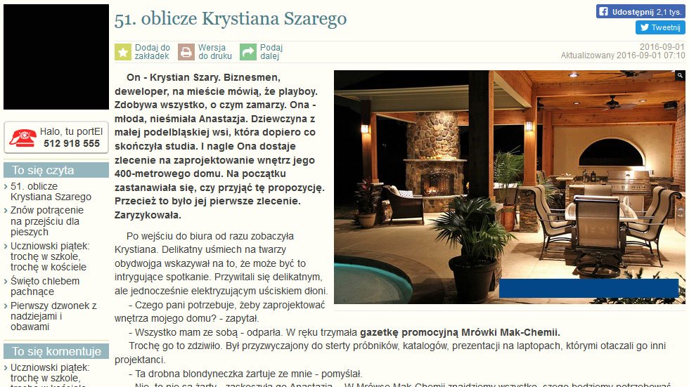 Na stronach Elbląskiej Gazety Internatowej portEL.pl ukazał się artykuł sponsorowany reklamujący lokalny skład budowlany "Mrówka". I nie byłoby w tym nic dziwnego, gdyby nie TE NAWIĄZANIA do powieści "50 twarzy Greya":