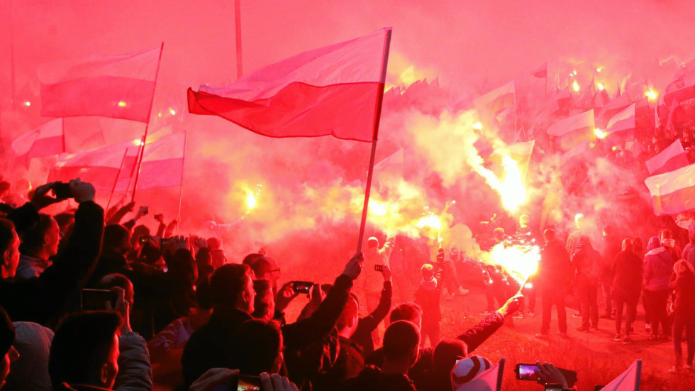 Pech chciał, że grupy kibicowskie, zwane też kultywatorami pamięci o żołnierzach wyklętych, rozpoczęły występ, kiedy reszta marszu chciała śpiewać Mazurka Dąbrowskiego.
