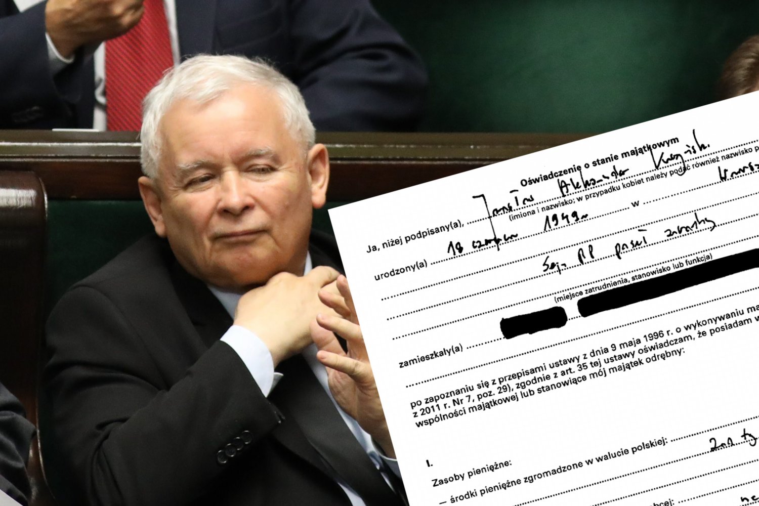 Dieta poselska, świadczenia ZUS, 5 tys. złotych oszczędności, część nieruchomości na Żoliborzu oraz Andrzej Duda – to wszystko, co ujawnił Jarosław Kaczyński w dokumentach złożonych w Kancelarii Sejmu.