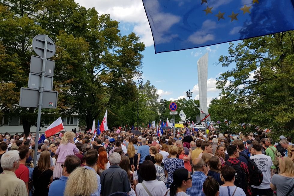Na każdym kroku mnożą się przypadki demokracji: nikt nie atakuje osób o innym kolorze skóry, między tłumem bez przeszkód przechadzają się osoby z flagami w kolorze tęczy, a sygnał TVP Info jest atakowany hasłami o obronie praworządności.