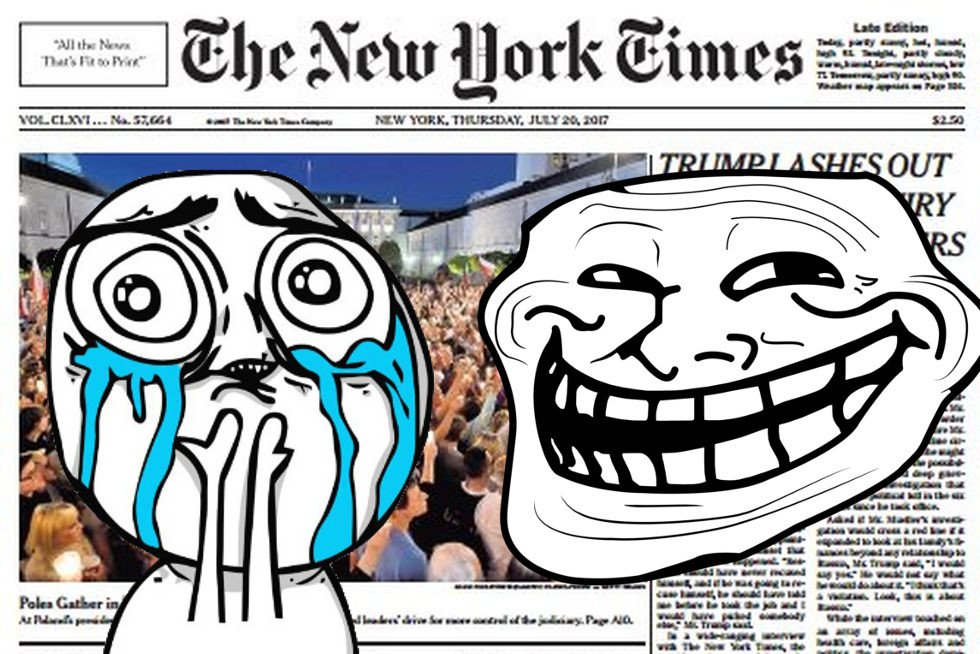 – Step by step, the Polish government has moved against democratic norms: It increased government control over the news media, cracked down on public gatherings and restricted the activities of nongovernmental organizations. Now the party in power is moving aggressively to take control of the last major independent government institution, the courts, drawing crowds into the streets and possible condemnation by the European Union - tym zajmującym akapitem zaczyna się tekst zajawiony na pierwszej stronie czwartkowego "NYT", który rozsławia na ogół niedocenioną Polskę na świecie.
