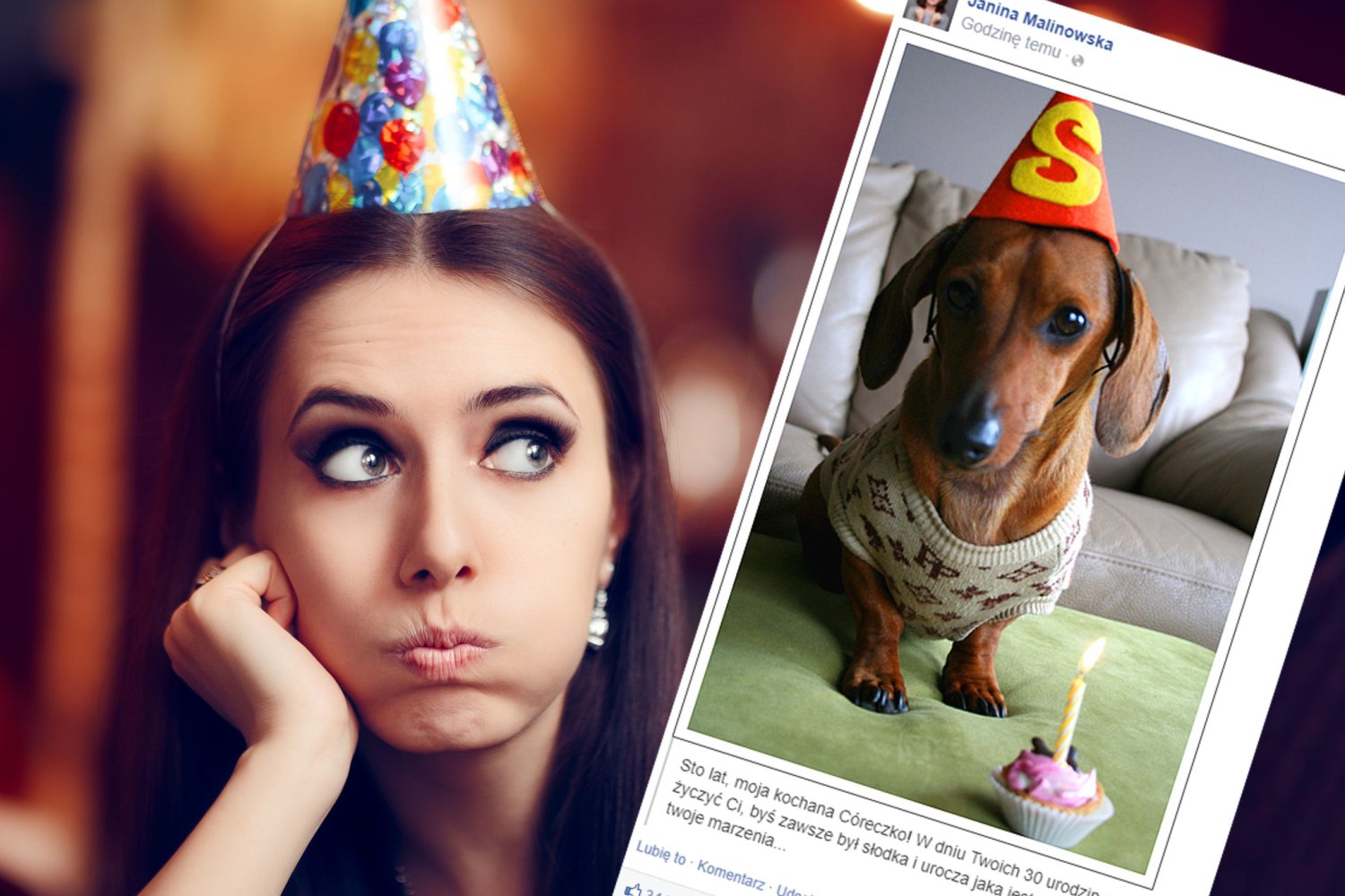Kobieta zamieściła na osi czasu swojej córki odnalezione w Google zabawne zdjęcie uroczego psa w imprezowej czapeczce, a miłe i długie życzenia zaczęła od słów "Sto lat, moja kochana Córeczko!" – dowiaduje się ASZdziennik.