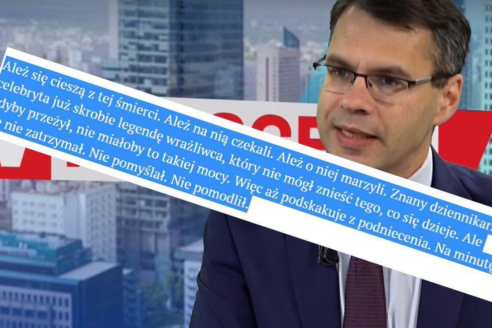 – Ależ się cieszą z tej śmierci. Ależ na nią czekali. Ależ o niej marzyli. Skarbnik partyjny wspólnie z Sorosem już kombinują ile będzie kosztowała szopka, którą zrobią z pogrzebu – napisał Karnowski po raz pierwszy tak otwarcie przyznając, że jest obecnie największym palantem na prawicy.