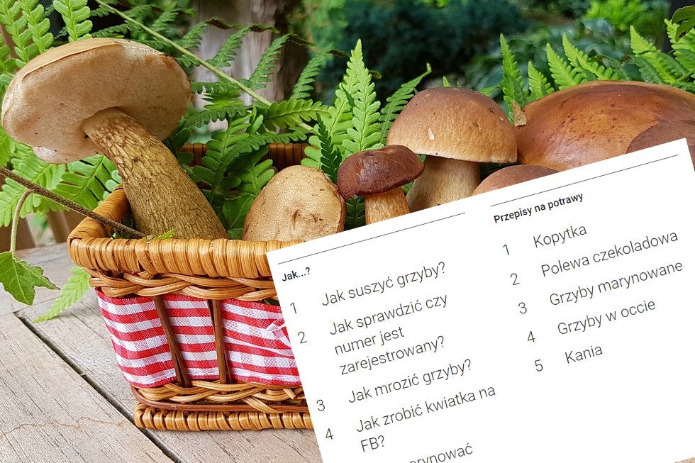 Wśród pytań "Jak...?" częściej od pytania "jak złożyć wniosek o 500 plus" mój kraj pytał Google o to "jak szuszyć grzyby", "jak mrozić grzyby" i "jak marynować grzyby". Druga połowa rankingu zaj***na jest zaś przepisami kulinarnymi, gdzie na próżno szukać schabowego według Magdy Gessler czy przepisu na pulchne mielone. Jest za to receptura na grzyby marynowane, grzyby w occie oraz kanie.