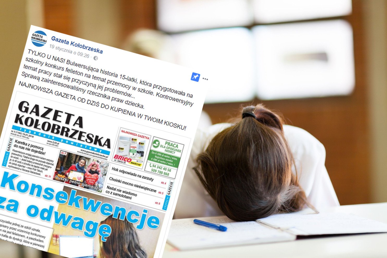Karygodną odwagą popisała się 15-letnia Klaudia, uczennica szkoły podstawowej w Kołobrzegu. W felietonie na konkurs dziennikarski miała czelność opisać problem przemocy psychicznej wśród swoich rówieśników. Jej zapał do zwrócenia uwagi na patologię w szkołach w samą porę utemperowała jednak czujna dyrekcja.