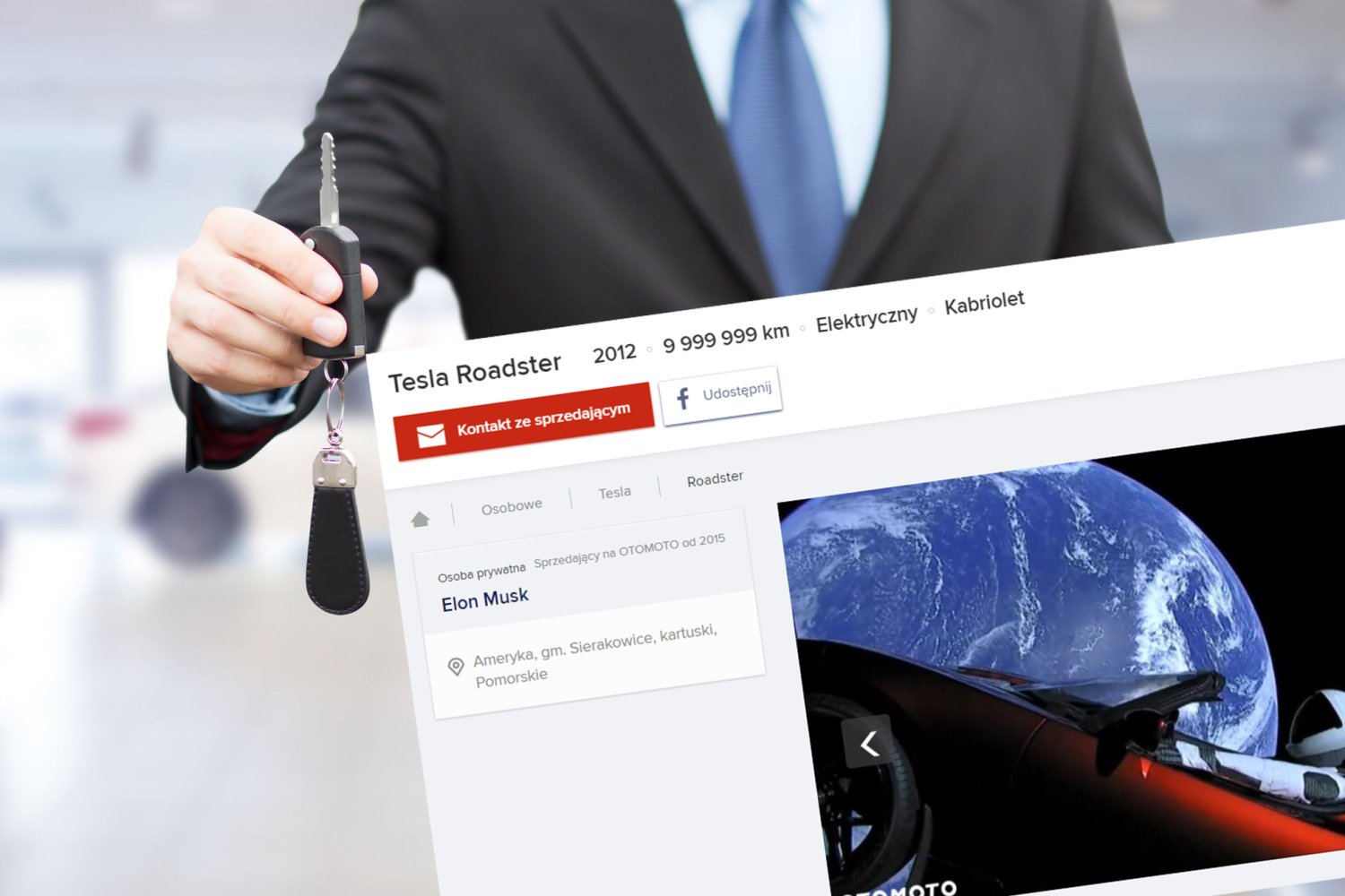 Atrakcyjna oferta sprzedaży używanej Tesli Roadster pojawiła się w serwisie Otomoto - dowiaduje się ASZdziennik. Kolor? Czerwony. Typ? Kabriolet. Stan? Używany i bezwypadkowy. Nic tylko brać. Starszy niepalący manekin jeździł nią tylko na Marsa.