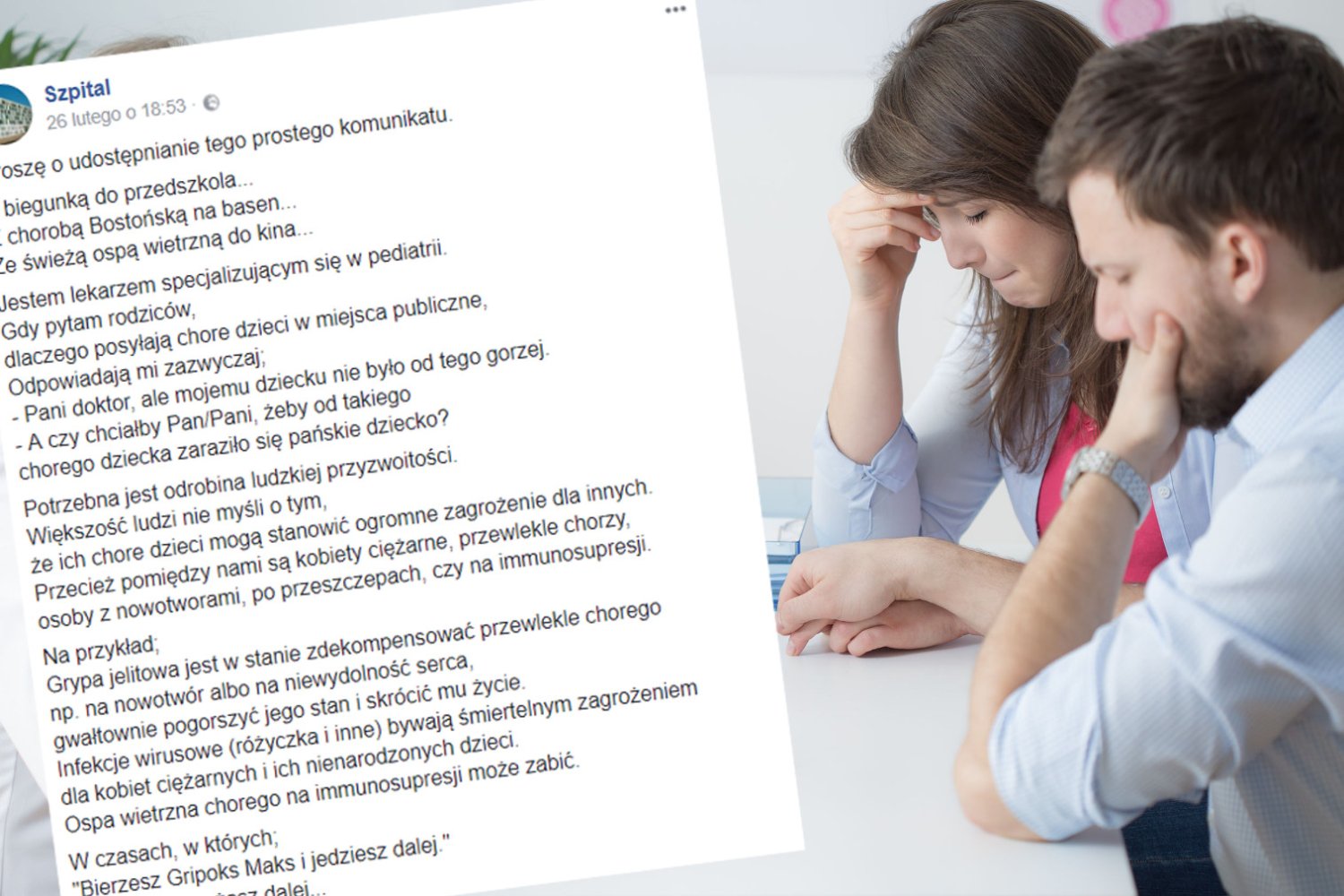 Jak śmie wtrącać się w rujnowanie zdrowia cudzych dzieci?! Bezmyslni rodzice z całej Polski są oburzeni prowokacją, której na Facebooku dopuścił się pediatra z Warszawy. Lekarz okrutnie obnażył głupotę ojców i matek, którzy posyłają swoje chore dzieci w miejsca publiczne.