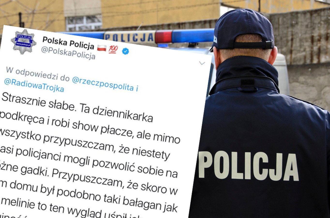 – Strasznie słabe. Ta dziennikarka podkręca i robi show płacze, ale mimo wszystko przypuszczam, że niestety nasi policjanci mogli pozwolić sobie na różne gadki. Przypuszczam, że skoro w tym domu był podobno taki bałagan jak na melinie to ten wygląd uśpił ich czujność" – napisał administrator policyjnego konta na Twitterze.