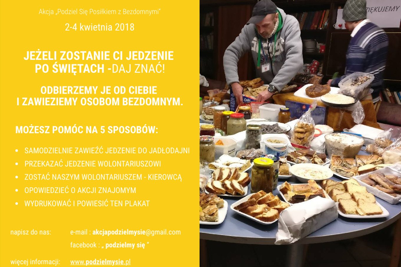 Chodzi o akcję "Podziel się posiłkiem z bezdomnymi". Dzięki prężnej polskiej myśli empatycznej, nie trzeba już wyrzucać jedzenia, które zostało nam po świętach. Sałatki, kiełbasy, wędliny, pasztety i ciasta, którym nie podołał nawet znany z apetytu wujek Staszek, trafią prosto do jadłodajni dla osób bezdomnych i ubogich.