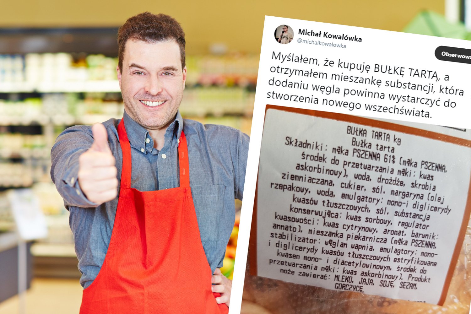 W składzie bułki tartej oprócz mąki i drożdży odnaleziono m.in. margarynę, oleje, emulgatory, monoglicerydy, diglicerydy, kwasy tłuszczowe, substancje konserwujące, regulatory kwasowości, mieszanki piekarnicze i stabilizatory.