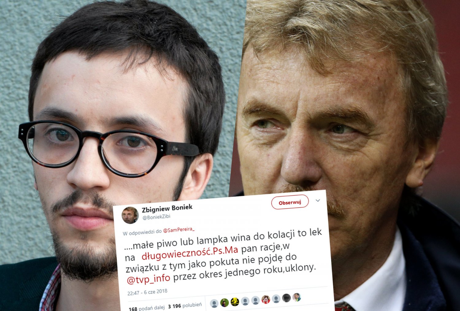 – Małe piwo lub lampka wina do kolacji to lek na długowieczność – odparł Pereirze prezes PZPN. – W związku z tym jako pokuta nie pojdę do TVP Info przez okres jednego roku, ukłony.