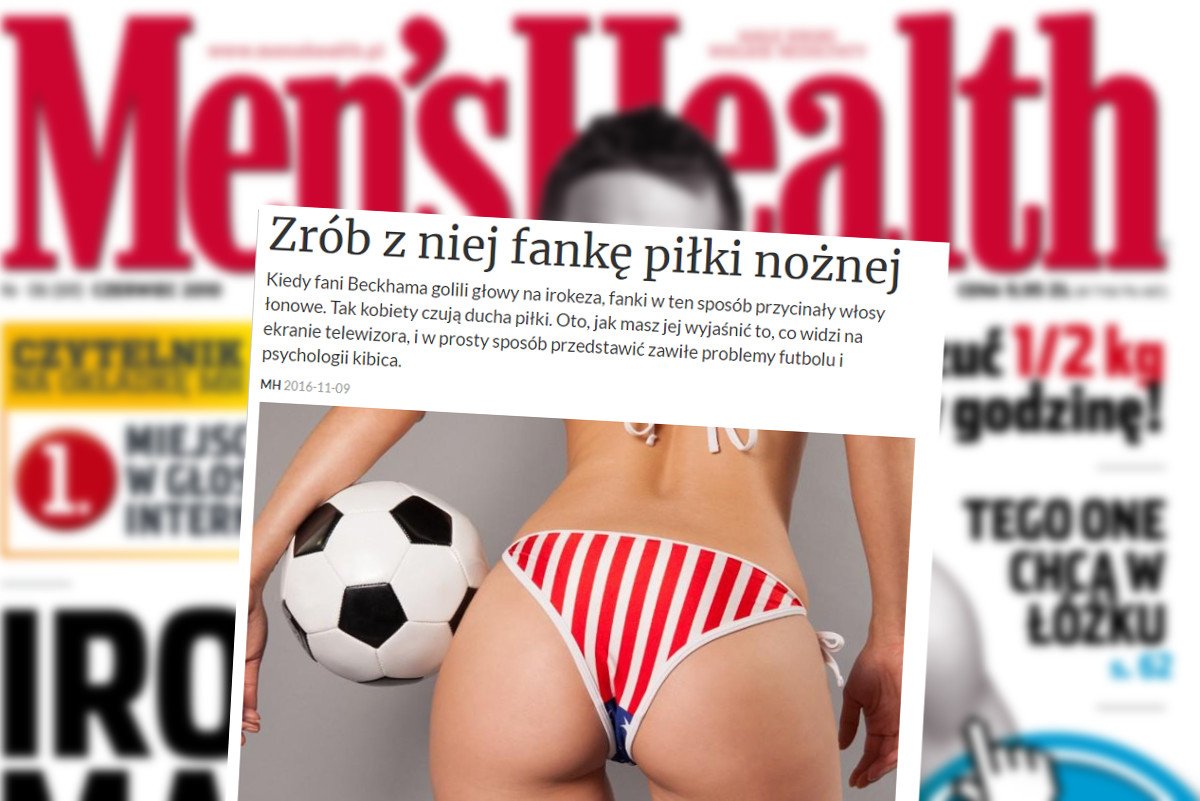 Z okazji mundialu "Men's Health" zorganizował wspominki z poprzednich turniejów i wrócił do swojego starego, dobrego seksizmu. Tekstem z 2016 roku przypomniał panom, jak zrobić ze swojej partnerki fankę piłki nożnej. Na stronie głównej, w dziale "SEKS".