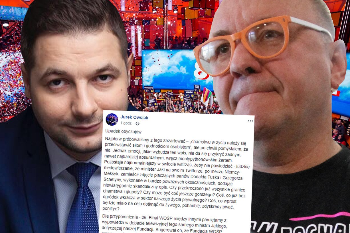 Jurek Owsiak chciał dobrze i ostro skrytykował skandaliczny wpis na Facebooku Patryka Jakiego. Chodzi o mem stworzony ze zdjęcia Donalda Tuska i Grzegorza Schetyny płaczących na pogrzebie ofiary katastrofy smoleńskiej. Z podpisem "Nasi przegrali z Meksykiem". Owsiak słusznie wypomina sztabowi Jakiego język nienawiści. I ma rację. Aż do ostatniego akapitu.
