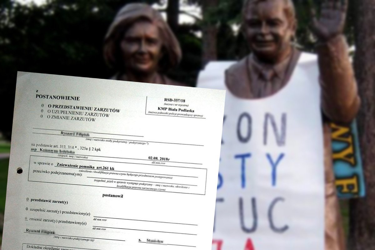 Fatalny dla policjantów z Białej Podlaskiej obrót przyjęła sprawa wywieszki "konstytucja" na pomniku Lecha Kaczyńskiego. Policja przedstawiła sprawcy zarzut znieważenia pomnika, czym arogancko znieważyła dobre imię policji z Białej Podlaskiej i zwierzchników MSW.