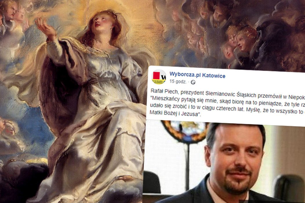 Smutek w Niebiosach. Maria z Nazaretu, pełniąca od ponad 2000 lat obowiązki Matki Bożej jako w Niebie tak i na ziemi, odchodzi ze stanowiska – poinformował rzecznik urzędu miejskiego w Siemianowicach Śląskich. Prezydent miasta Rafał Piech zdegradował ją na stanowisko księgowej. Bo jego zdaniem to Maryja odpowiada za finanse w jego mieście.