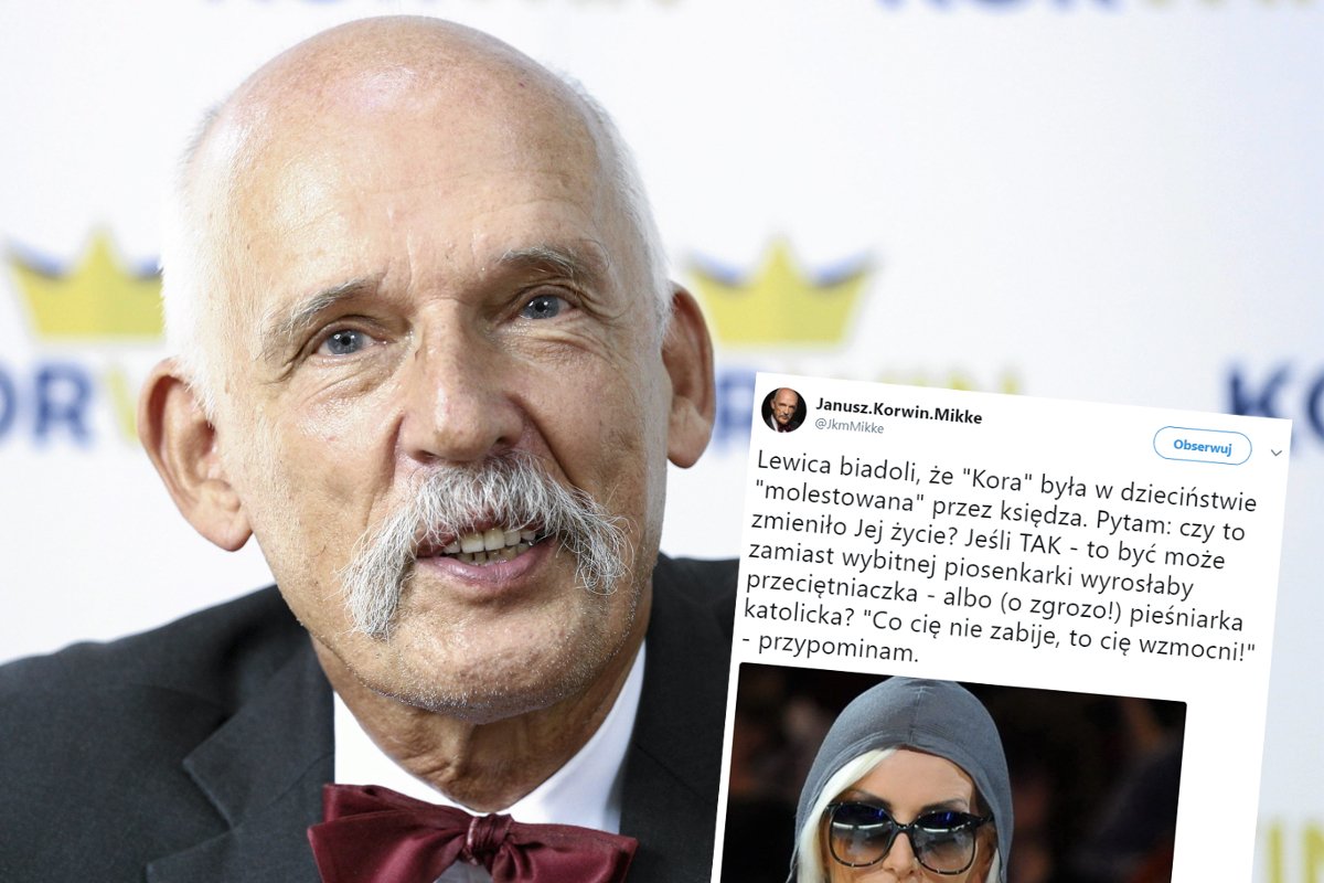 Korwin-Mikke wypowiedział się na Twitterze o zmarłej niedawno Korze Jackowskiej, która w 2010 roku w wywiadzie dla "Wprost" wyznała, że była molestowana przez księdza.
