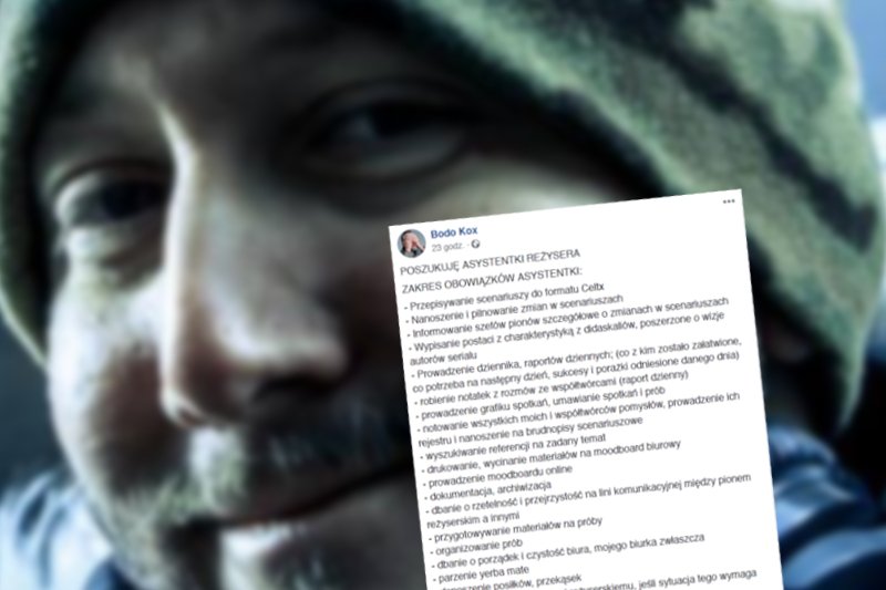 Bodo Kox nie gra, wbrew temu, co sugeruje jego nazwisko, w filmach porno. To dość znany polski reżyser, aktor i scenarzysta. Możecie kojarzyć jego produkcje, np. "Dziewczynę z szafy", czy "Człowieka z magicznym pudełkiem", a na ekranie pojawił się m.in. w "Pitbullu" i "Wojnie polsko-ruskiej". A ostatnio pan Kox dał się również poznać jako szczwany pracodawca.