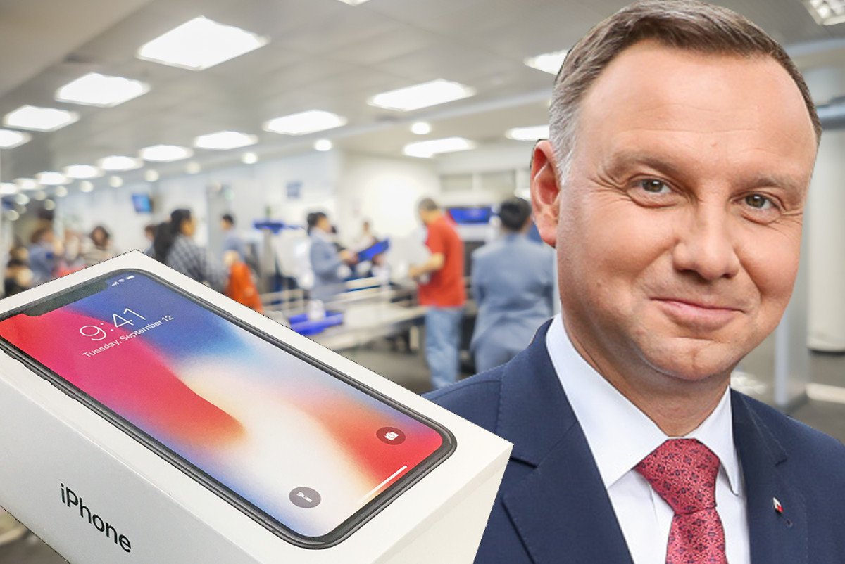 Wpadka Andrzeja Dudy na lotnisku w Waszyngtonie. Celnicy nie dali wiary tłumaczeniom prezydenta, że pięćdziesiąt sześć iPhone'ów X znalezionych w jego bagażu podręcznym to sprzęt na użytek własny. Oznacza to, że trzeba będzie dopłacić VAT, a powrót do Polski się opóźni.