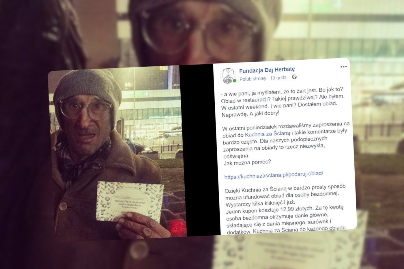 – A wie pani, ja myślałem, że to żart jest – mówi o akcji "Kuchni za Ścianą" i fundacji "Daj Herbatę" jeden z bezdomnych, któremu internauci ufundowali ciepły posiłek. – Bo jak to? Obiad w restauracji? Takiej prawdziwej? Ale byłem. W ostatni weekend. I wie pani? Dostałem obiad. Naprawdę. A jaki dobry!