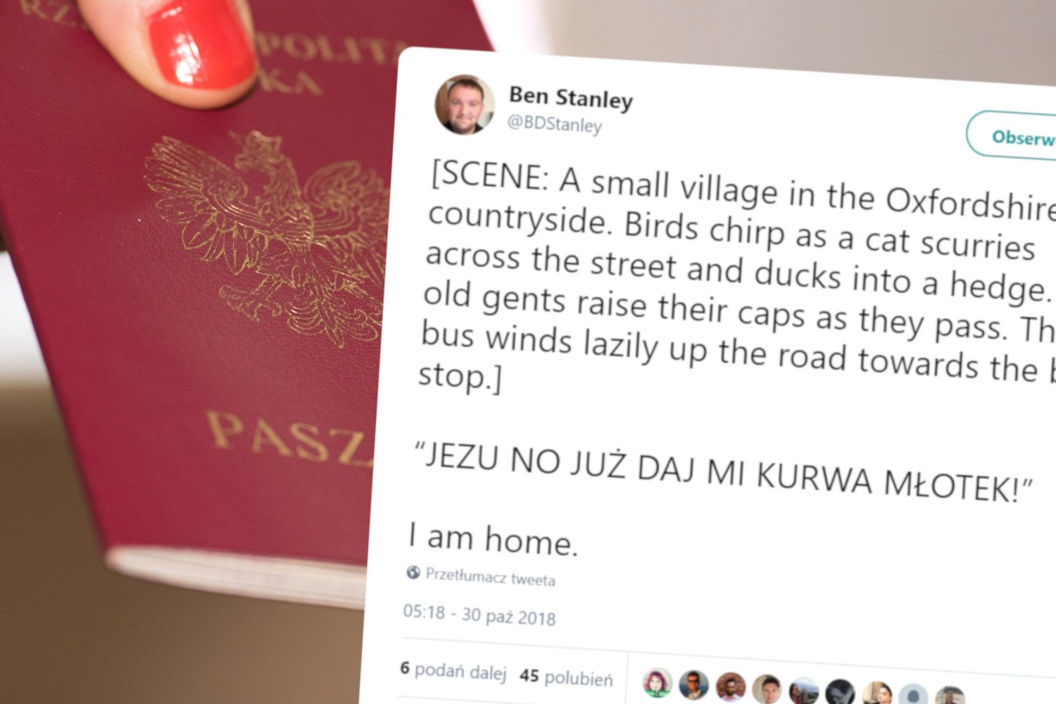 Honorowe obywatelstwo Polski otrzymał z rąk szefa MSZ brytyjski politolog Ben Stanley – dowiaduje się ASZdziennik. Wszystko za sprawą wzruszającego wpisu na Twitterze. Ben Stanley swoim opisem typowego brytyjskiego krajobrazu udowodnił, że w jego żyłach musi płynąć polska krew.
