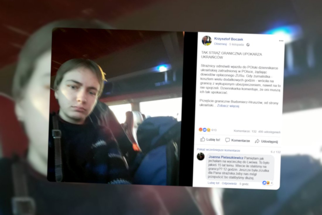 Historię pani Kateryny, dziennikarki legalnie pracującej w Warszawie, opisał na Facebooku pan Krzysztof, który towarzyszył jej podczas przekraczania ukraińsko-polskiej granicy.