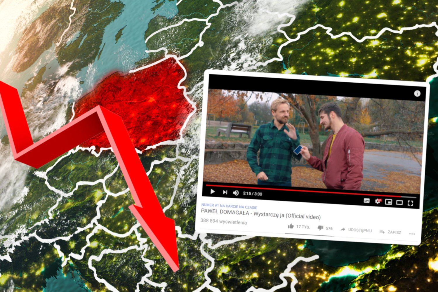 Agencja Standard&Poor's obniżyła rating Polski do poziomu śmieciowego z perspektywą negatywną – podaje Reuters. To reakcja rynków na nowy singiel Pawła Domagały. Przez piosenkę "Wystarczę ja" Polska spadła o 145 miejsc w rankingu państw najlepszych do życia. Jest tak zła, że ONZ apeluje do świata o otwarcie granic dla uchodźców z zagrożonych emisją terenów.
