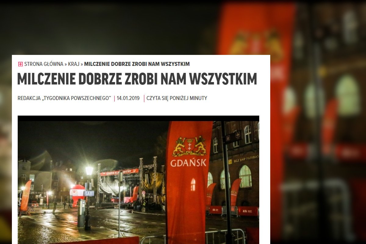 Ze wszystkich komentarzy, jakie po po tragedii w Gdańsku pojawiły się i nadal pojawiają się w internecie, zacytujemy dziś tylko jeden. O tym, że chwila milczenia dobrze zrobi nam wszystkim.