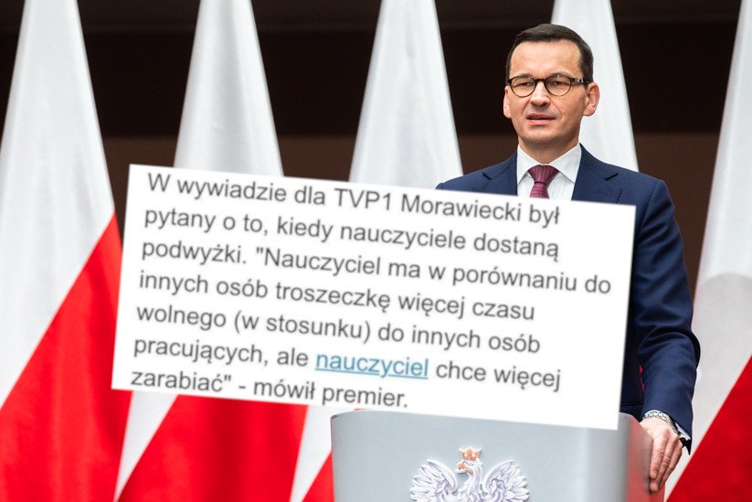 – Nauczyciel ma w porównaniu do innych osób troszeczkę więcej czasu wolnego w stosunku do innych osób pracujących, ale nauczyciel chce więcej zarabiać – powiedział Mateusz Morawiecki w TVP.