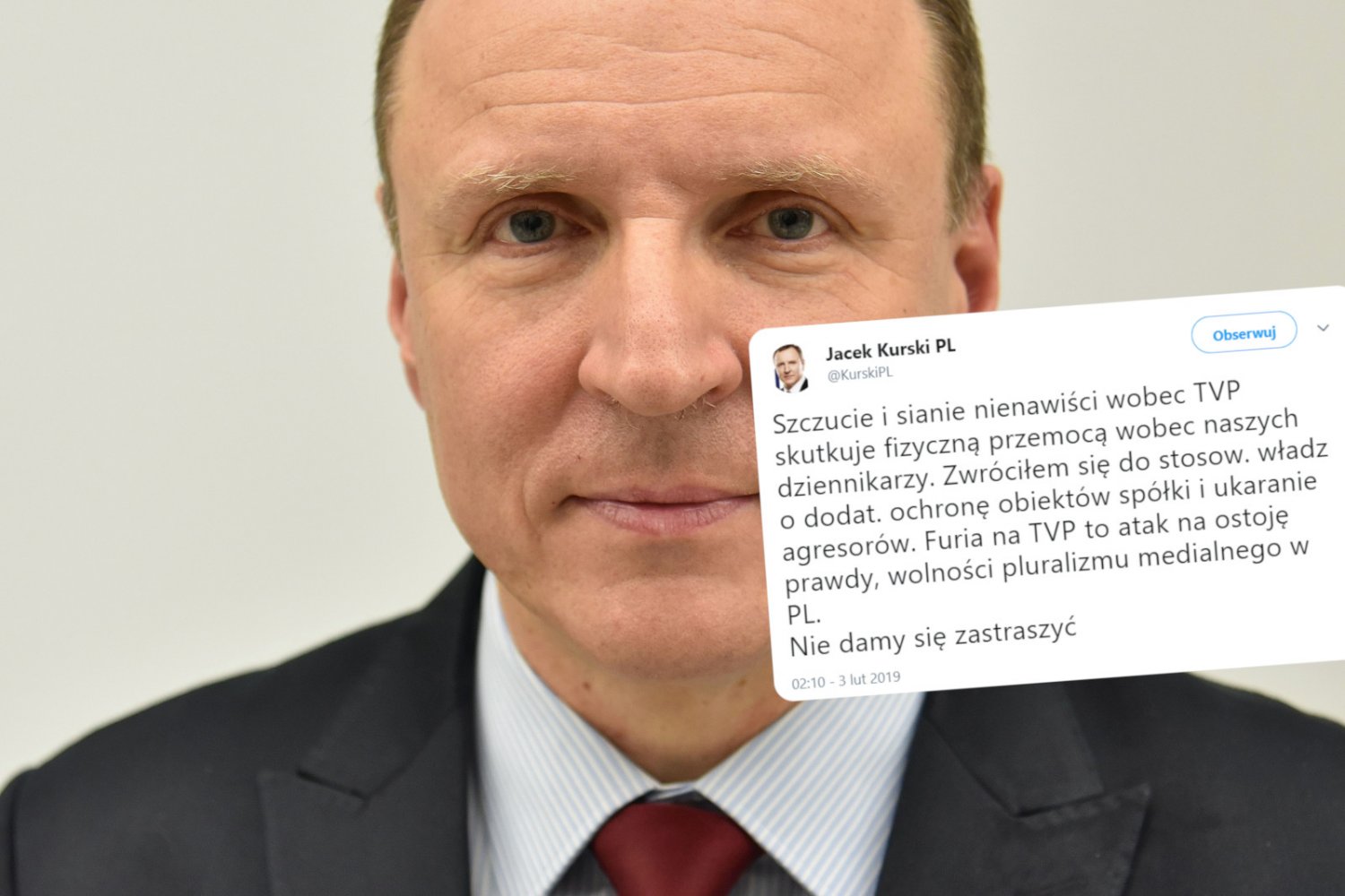 – Szczucie i sianie nienawiści wobec TVP skutkuje fizyczną przemocą wobec naszych dziennikarzy. Zwróciłem się do stosownych władz o dodatkową ochronę obiektów spółki i ukaranie agresorów – napisał Kurski, ale dopisał też dziwne uzasadnienie swojej tezy.