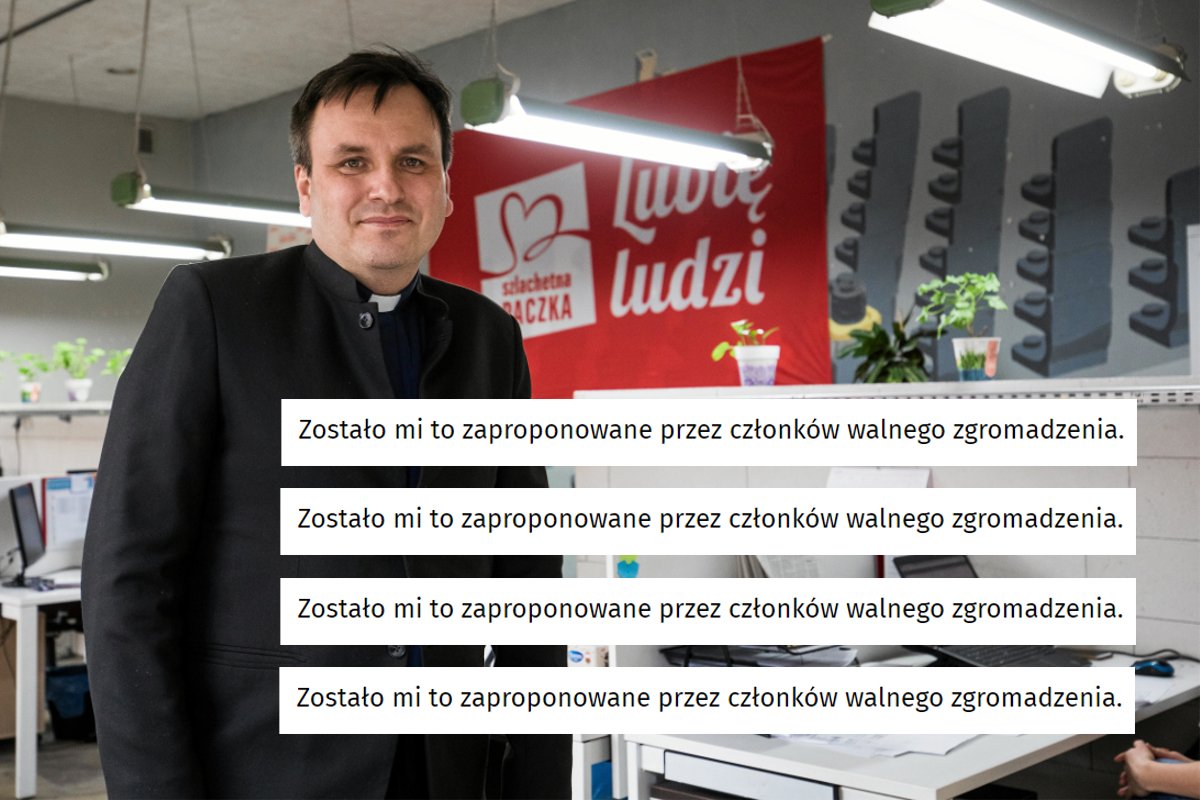 Ksiądz Grzegorz Babiarz: Zostało mi to zaproponowane przez członków walnego zgromadzenia, personalia tych osób podlegają ochronie danych osobowych.