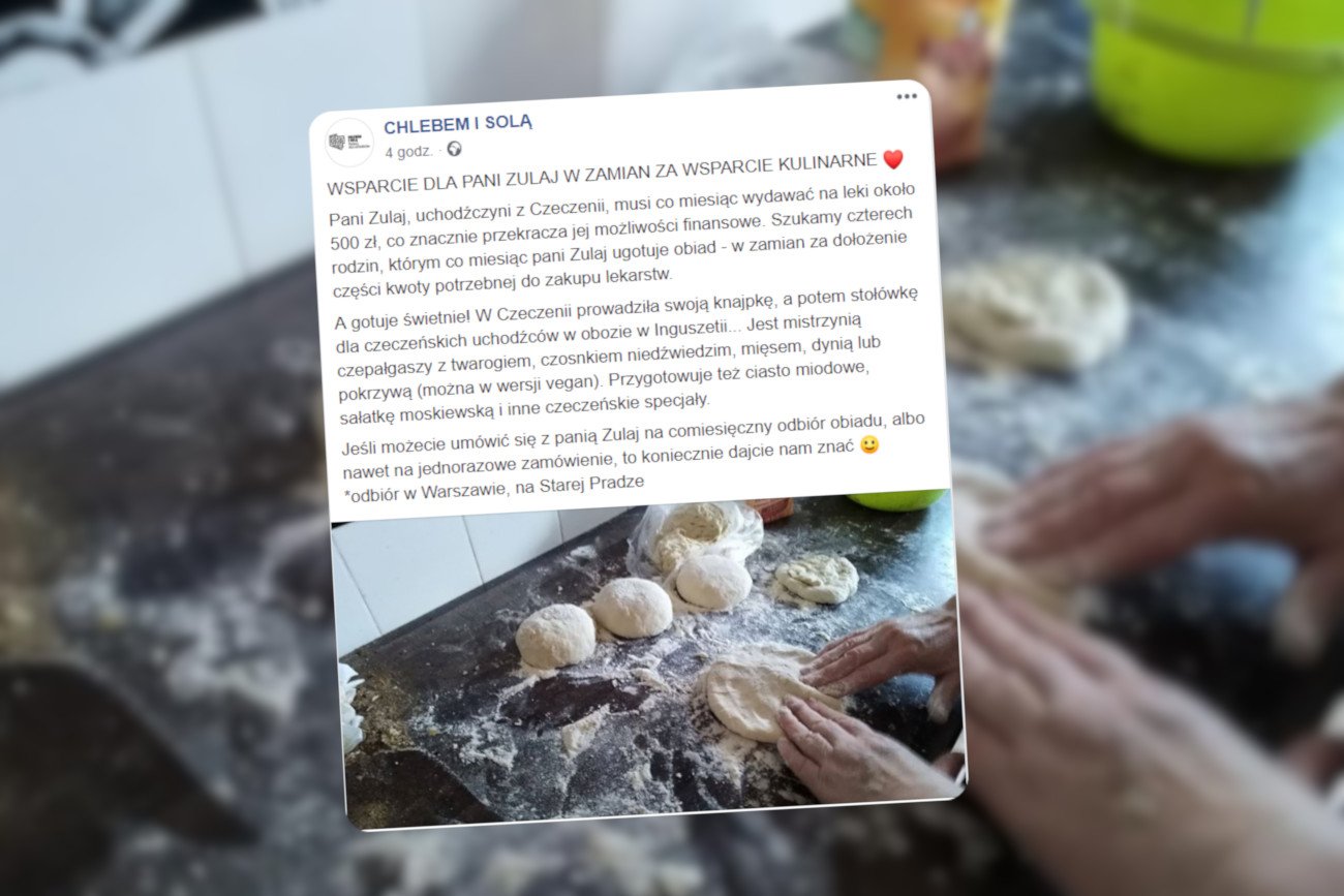 Pani Zulaj, mieszkająca w Warszawie uchodźczyni z Czeczenii, co miesiąc wydaje na leki około 500 zł, co znacznie przekracza jej możliwości finansowe – pisze na Facebooku organizacja "Chlebem i solą". To bardzo zła wiadomość. Ale jest też dobra. Pani Zulaj można pomóc. Wystarczy zamówić u niej jedzenie.
