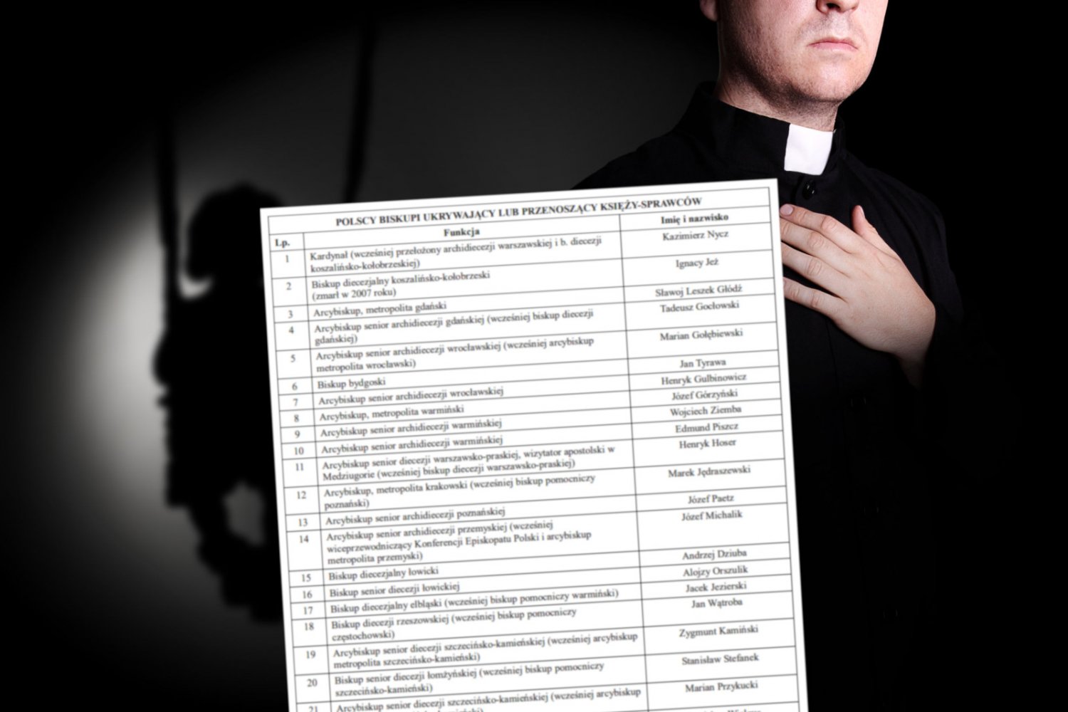 Fundacja "Nie lękajcie się" opublikowała listę hierarchów polskiego Kościoła, którzy przez lata ukrywali lub przenosili z miejsca na miejsce księży pedofilów. Publikujemy ją w całości. W przeciwieństwie do agresorów, tej listy nie uda się przenieść i schronić w innych parafiach.