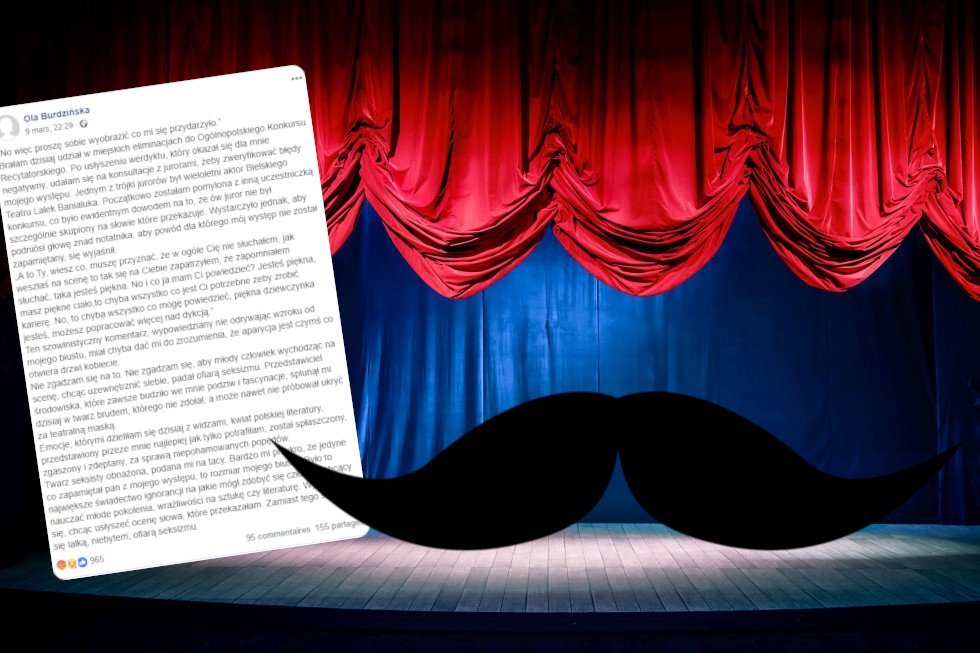 To miały być zwyczajne bielskie eliminacje do Ogólnopolskiego Konkursu Recytatorskiego – takie wydarzenie, kiedy młodzi ludzie recytują na scenie, a jury decyduje, kto z nich przejdzie do etapu krajowego. I nigdy byście o nim nie usłyszeli, gdyby nie to, że do grona jurorów wkradł się koleś o poziomie i wyczuciu wąsatego wuja z wesela.