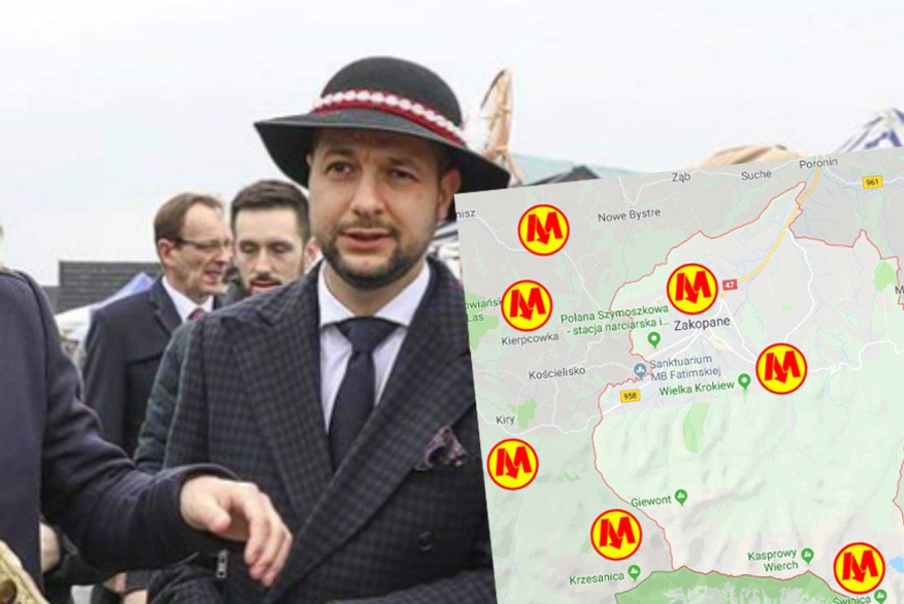 Patryk Jaki zadeklarował zdziwionym góralom, że III linia metra zakopiańskiego miałaby przebiegać z Wodogrzmotów Mickiewicza przez Świnicę, Kasprowy Wierch, Wielką Krokiew i Krupówki aż do Cichowiańskiego lasu.