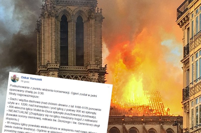 Dlatego niezwykle szokujący jest wpis Oskara Hanuska, konserwatora z Wydziału Konserwacji i Restauracji Dzieł Sztuki krakowskiej ASP, który podchodzi do pożaru zabytkowego budynku jak do pożaru zabytkowego budynku i w ciekawy oraz rzeczowy (!) sposób informuje, co spłonęło, a co udało się uratować i jaki jest stan katedry.