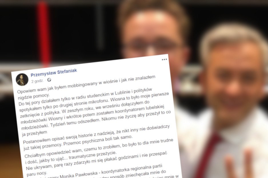 Postanowiłem opisać swoją historie z nadzieją, że nikt inny nie doświadczy już takiej przemocy. Przemoc psychiczna boli tak samo" – tak zaczyna swoją relację z pracy w partii Wiosna były działacz jej młodzieżówki z Lublina. Pan Przemysław napisał, że padł ofiarą mobbingu ze strony jednej z koordynatorek.
