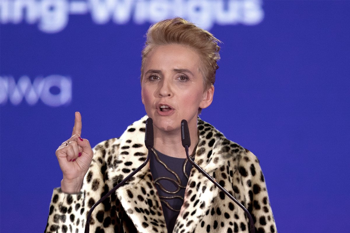 Scheuring-Wielgus zachęcała w Warszawie do głosowania na Wiosnę w wyborach do Parlamentu Europejskiego. Jednak jej słowa zostały przesłonięte przez kontrowersyjny strój – białe futro w czarne cętki zszyte z psich skór.