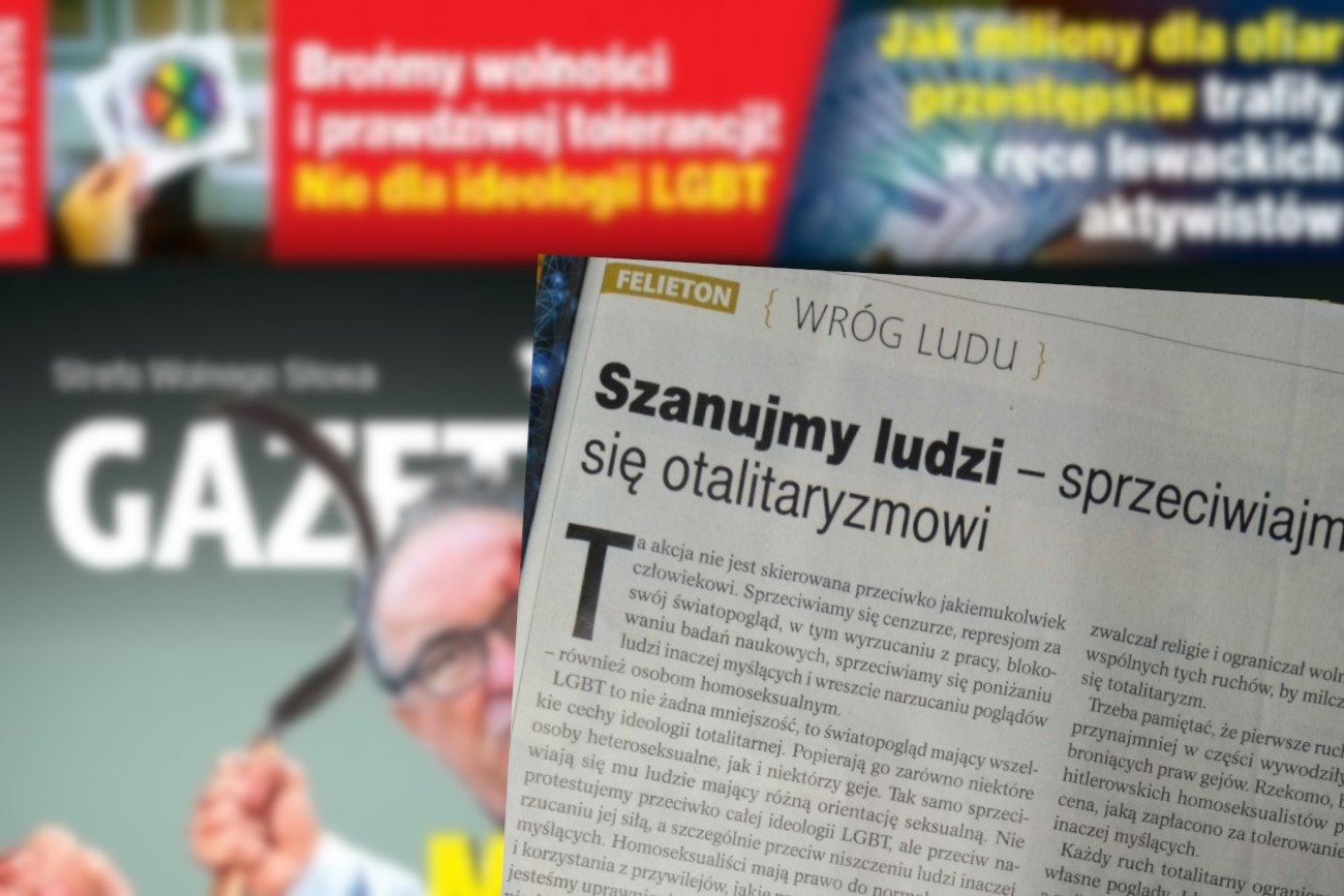 Ukazała się "Gazeta Polska" z naklejką "Strefa wolna od LGBT". Ale to nie wszystko. W środku "Gazety Polskiej" jest coś głupszego od naklejki, którą Tomasz Sakiewicz próbuje uwolnić przestrzeń publiczną od osób LGBT: manifest Tomasza Sakiewicza, którym próbuje uwolnić przestrzeń publiczną od osób LGBT.