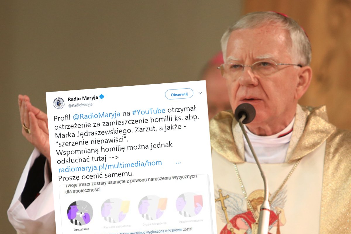 Kanał Radia Maryja wrzucił na YouTube nagranie z homilii patostreamera podającego się za Marka Jędraszewskiego lub Arcybiskupa czy Metropolitę. Serwis jednak je usunął i wysłał Radiu Maryja ostrzeżenie, że kolejna promocja patologii z ich strony spotka się z zawieszeniem konta na tydzień.