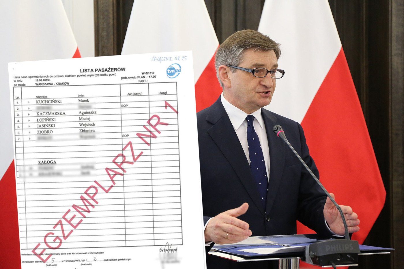To jest ASZdziennik, ale Marek Kuchciński naprawdę zabierał na pokład tylko wybranych kolegów z PiS.